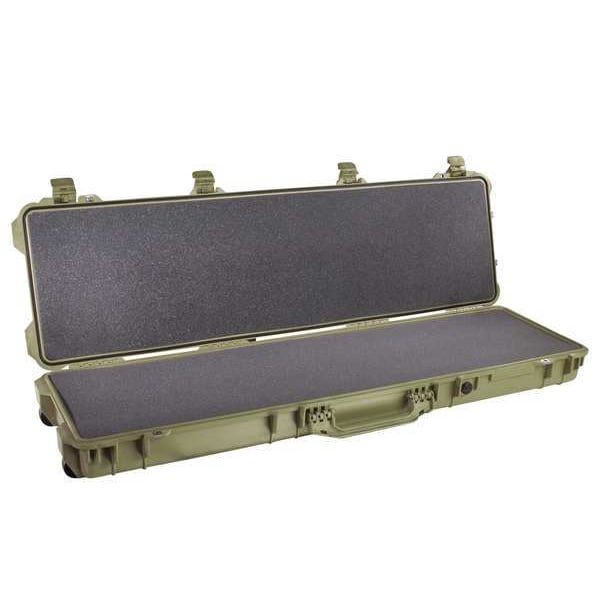 Protective Case, Bottom Depth 3 1/2 in, Closure Type Double Throw, Color Green, Electrostatic Discharge Not Electrostatic Discharge Conductive, Foam Design Convoluted, Solid, Handle Style Folding, Includes Foam Insert Foam Insert Included, Inside Depth 5 1/4 in, Inside Length 50 1/2 in, Inside Width 13 1/2 in, Lid Depth 1 3/4 in, Material Plastic, Maximum Operating Temperature 210 Degrees F, Minimum Operating Temperature -40 Degrees F, Number of Latches 4, Number of Wheels 2