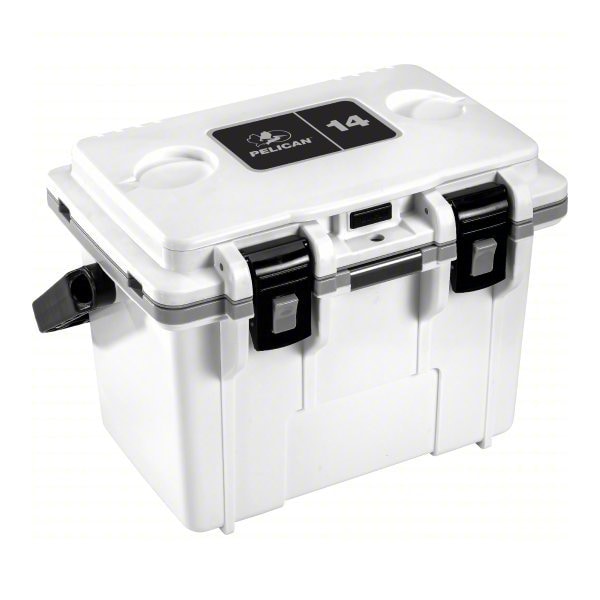 Chest Cooler, Personal Cooler, 14 qt, Exterior Length 18 in, Exterior Width 11 1/2 in, Exterior Height 13 in, Exterior Dia. Not Applicable, Polyurethane, Body Color Gray, White, Lid Color Gray, White, Number of Cans 6