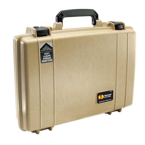 Protective Case, Bottom Depth 2 3/8 in, Color Desert Tan, Inside Depth 3 3/4 in, Inside Length 15 5/8 in, Inside Width 10 7/16 in, Lid Depth 1 3/8 in, Material Copolymer Polypropylene, Number of Wheels 0, Overall Depth 4 3/8 in, Overall Length 16 3/4 in, Overall Width 13 1/8 in, Standards MIL C-4150J, Weight 4.28 lb