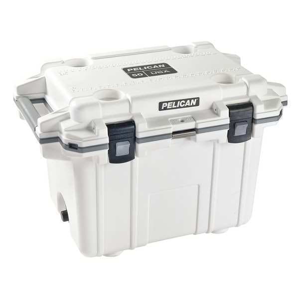 Marine Chest Cooler, Marine Chest Cooler, With Wheels No, 50 qt, Exterior Length 30 in, Exterior Width 20 5/16 in, Exterior Height 20 11/32 in, Plastic, Ice Retention Up to 10 days, Body Color Gray, White, Lid Color White, Number of Cans 38