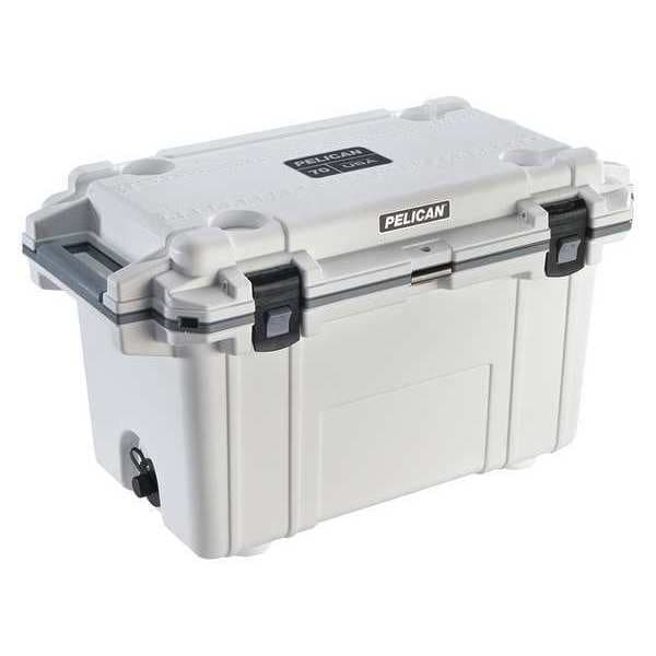 Marine Chest Cooler, Marine Chest Cooler, With Wheels No, 70 qt, Exterior Length 36 in, Exterior Width 20 5/16 in, Exterior Height 21 in, Plastic, Ice Retention Up to 10 days, Body Color Gray, White, Lid Color White, Number of Cans 53
