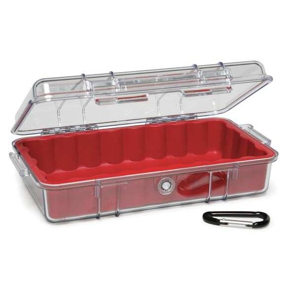 Protective Case, Mfr. Series 1060, Color Red, Construction Polycarbonate, Exterior Length 9.88 in, Exterior Width 5.59 in, Exterior Depth 2.62 in, Inside Length 8 1/4 in, Inside Width 4 1/4 in, Inside Depth 2.25 in, Water Tight Up To 1m for 30 min, Standards 03TEST1242, EN60529: 1992, IEC529: 1989, Includes Carabiner