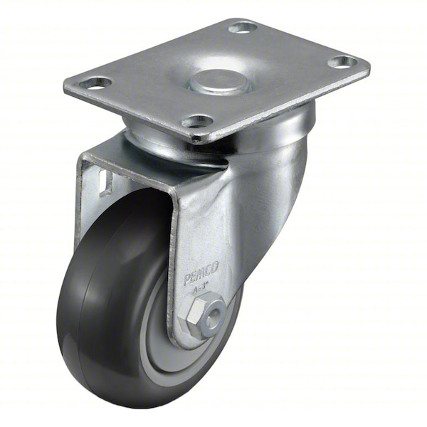 Swivel, Plate Caster, Load Rating 270 lb, Wheel Dia. 3 in, Wheel Width 1 1/4 in, Wheel/Tread Material Polyurethane, Wheel Core Material Polyurethane, Non-Marking No, Number of Wheels 1, Caster Brake Type No Brake, Tread Shape Standard