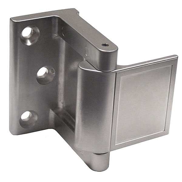 Hotel Security Latch, Length 1 1/2 in, Width 1 1/2 in, Height 2 3/4 in, Satin Chrome/Nickel Finish, Material Aluminum, Hardware Included, For Use With Metal or Wood Door Frame