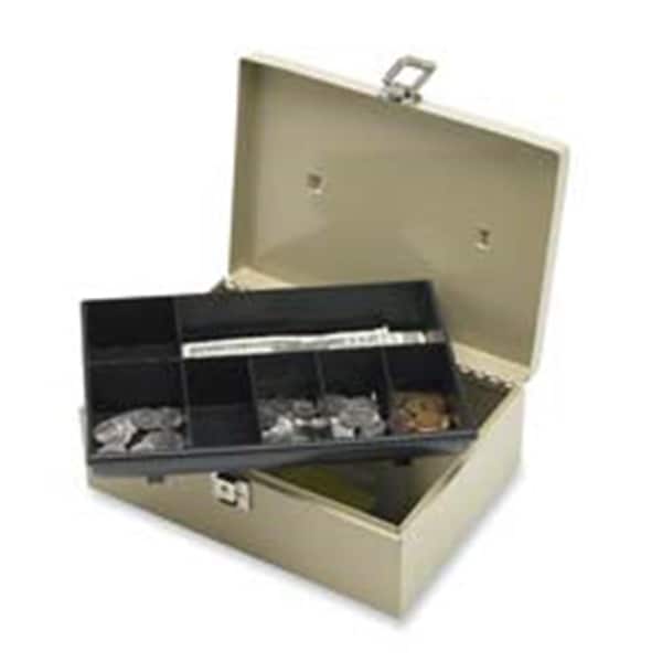 Cash Box- w- Latch Lock- 2 Keys- 7 Cmpmnts- 11in.x7-.75in.x4in.- Gray