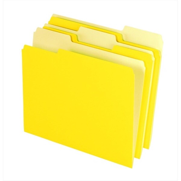 Two-Tone Reversible File Folder has lighter interior shade than the exterior for making tabs easier to read and reduce misfiling. Folder featuring 1/3 cut tab in positions is made of medium weight heavy duty stock. Features -Interior lighter shade than exterior for greater visibility of tabs. -Color - Yellow. -Pack - 100. -Cut Tabs - 1/3. -Expansion - 0.75 in. -Material - 11-Pt Stock. -Letter Size.