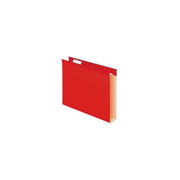 Extra Capacity Reinforced Hanging File Folders, 2" Capacity, Letter Size, 1/5-Cut Tabs, Red, 25PK