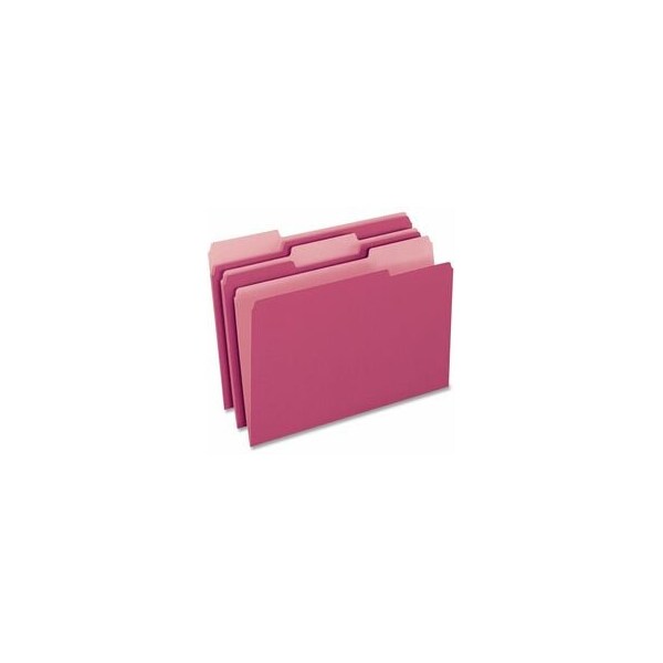 File Folders, Size Letter, 1/3 Tab Cut, Tab Position Assorted, Height 8 1/2 in, Width 11 in, Color Pink, Package Quantity 100