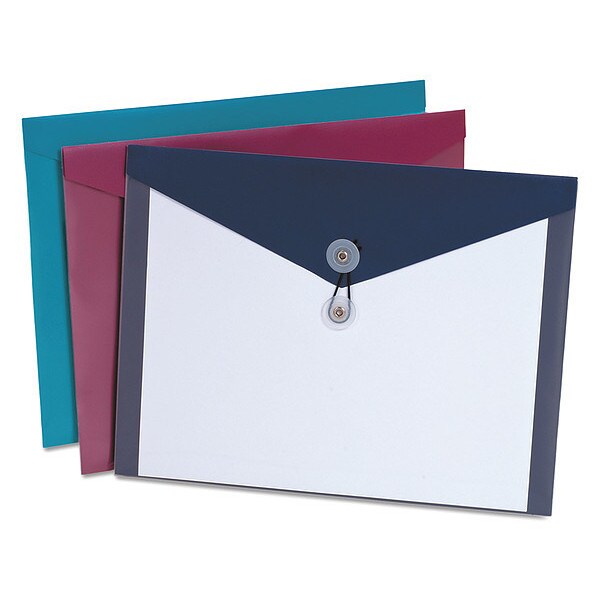 Front View Envelopes, Material Polypropylene, Envelope Closure String and Button, Color Assorted, Height 9 1/4 in, Width 12 1/2 in, Package Quantity 4