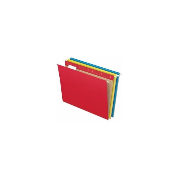 Hanging File Folders, Height 8 1/2 in, Width 11 in, Color Blue, Red, Yellow, Includes Label Sheet, Tabs, Package Quantity 25