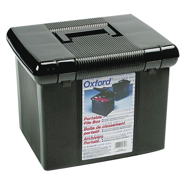 Portable File Box, File Size Letter, Height 11 1/8 in, Width 13 7/8 in, Color Black, Material Plastic