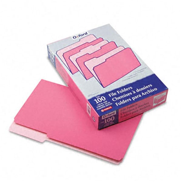 Two-Tone File Folders- 1/3 Cut- Top Tab- Legal- Pink/Light Pink- 100/Box