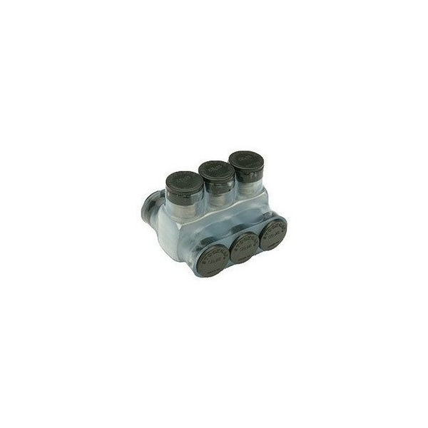 4.13'' x 3'' x 2.75'', 600 V, 3/8'' Hex, 4 AWG Stranded to 600 KCMIL Copper/Aluminum Conductor, 3-Port, 2-Side Entry, Clear Plastisol Pre-Insulated, Aluminum Alloy, Power Bar