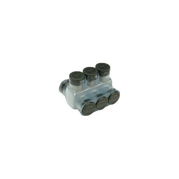 3.15'' x 2.63'' x 2.13'', 5/16'' Hex, 600 V, 10 AWG Solid to 250 KCMIL, Clear, Aluminum Alloy, Pre-Insulated, Double Sided, 3-Port, Mechanical Power Bar