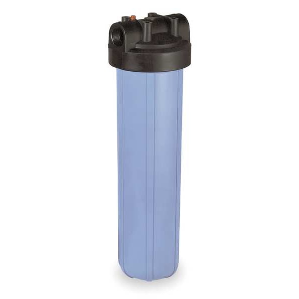 Water Filter Housing, Housing Material Polypropylene, Flow Rate 15 gpm, Connection Size 1 in, Overall Height 23 1/4 in, Overall Diameter 7 1/2 in, Connection Type NPT, Overall Length 23 1/4 in, Overall Width 7 1/2 in, Application Heavy-Sediment, Color Blue, Compatible Mfr. Model Number 144258, 144259, 144368, 144928, 150061, 150296, 151122, 160210, 244718, 357639, 357640, SH144229, Compatible with Grainger Part Number 3ANY8, 4BA73, Features Accepts Up to 4 1/2 in Diameter Cartridges