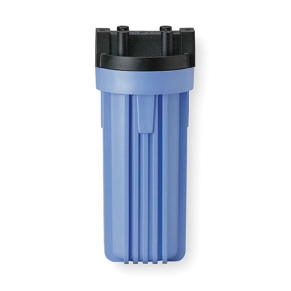 Water Filter Housing, Housing Material Polypropylene, Flow Rate 10 gpm, Connection Size 3/4 in, Overall Height 12 1/4 in, Overall Diameter 5 1/8 in, Connection Type NPT, Overall Length 12 1/4 in, Overall Width 5 1/8 in, Application Commerical Filtration, Industrial Filtration, Residential, Color Blue, Compatible Mfr. Model Number 150295, 150578, 151117, 151118, 151120, 155003, 244043, 244686, 244687, Compatible with Grainger Part Number 4BA69, 4BA72
