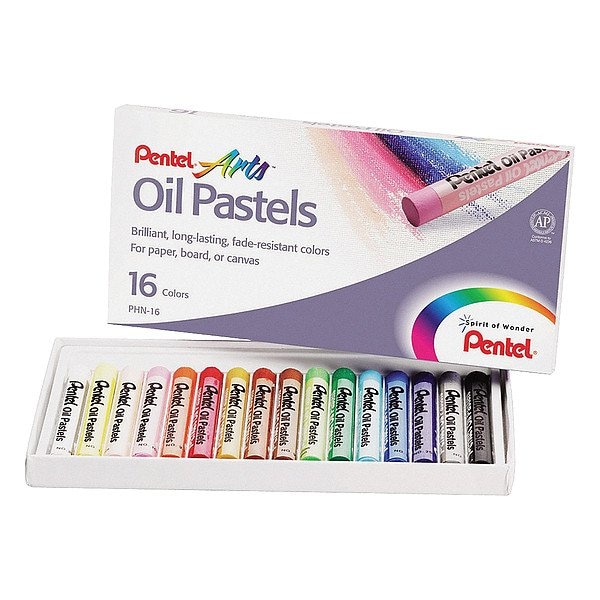 Oil Pastels, Colors Included Black, Blue, Brown, Gray, Green, Light Blue, Light Green, Orange, Pale Orange, Pink, Purple, Raw Sienna, Red, Vandyke Brown, White, Yellow, Number of Crayons per Pack 16, Packs per Case 1, Material Oil Pastels, Length 2 3/8 in, Package Quantity 16