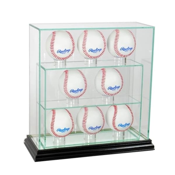 - Our 8 Ball Upright Baseball display case is made of all glass and supported by real wood.