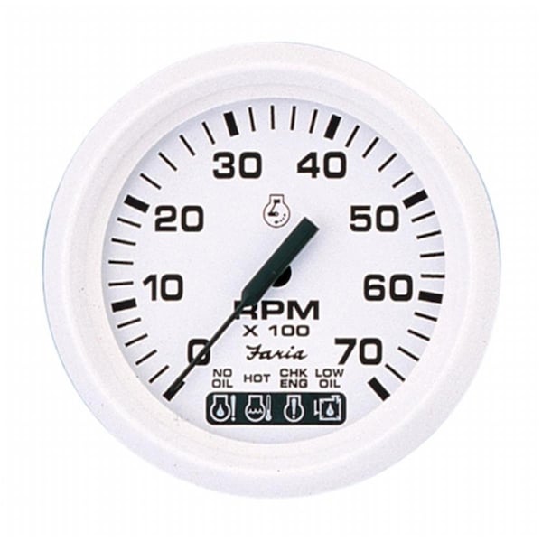 4 in. Dress White Tachometer with Systemcheck Indicator - 7,000 RPM (Discontinued)