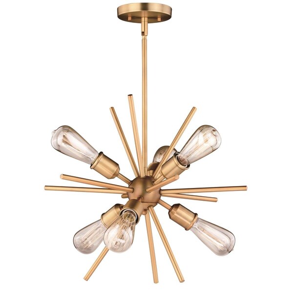 6 Light Estelle Pendant, Natural Brass