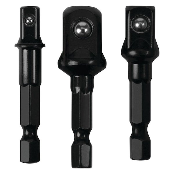 1/4 Inch/ 3/8 Inch/ 1/2 Inch Drive Adapter; Chrome Vanadium Steel; Set Of 3; 2 Inch Hex Shank