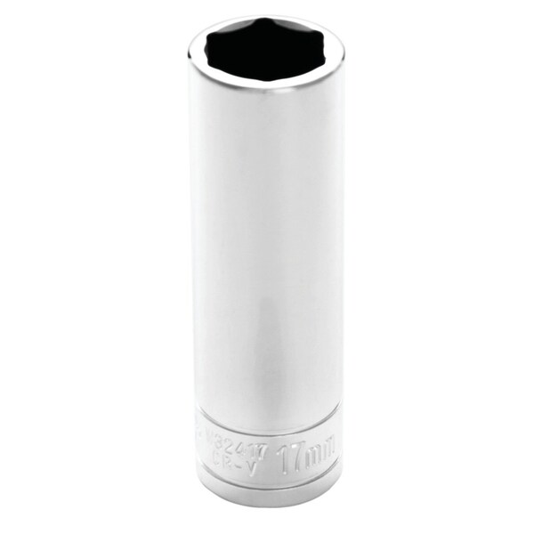1/2 Inch Drive; 17 Millimeter; Metric; Deep Socket; 6 Point; Polished Nickel Chrome Plated; Vanadium Alloy Steel; Single