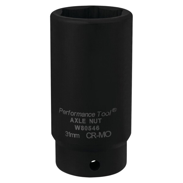 Socket 1/2 In Drive; 31 mm; Metric; Front Wheel Drive Axle Nut Socket; Black; Chrome Moly Steel (Discontinued)