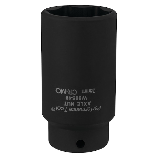 Socket 1/2 In Drive; 35 mm; Metric; Front Wheel Drive Axle Nut Socket; Black; Chrome Moly Steel
