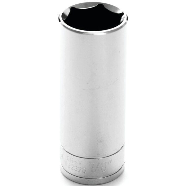 1/2 Inch Drive; 7/8 Inch; Standard; Deep Socket; 6 Point; Polished Nickel Chrome Plated; Vanadium Alloy Steel; Single