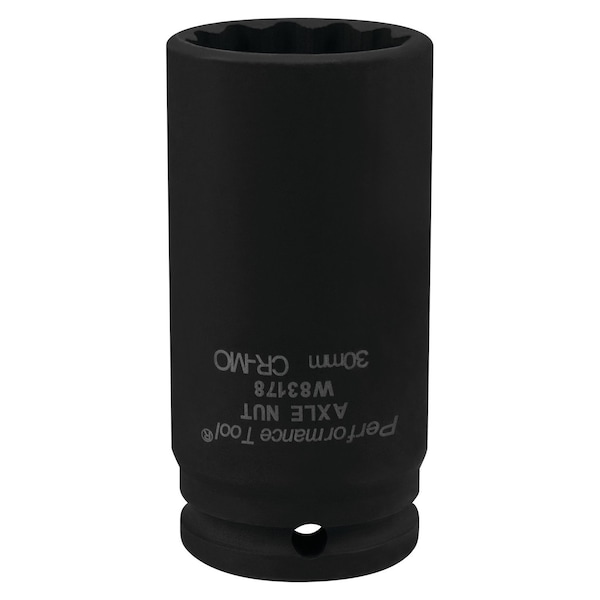 30 Millimeter; Metric; Wheel Drive Axle Nut Socket; 12 Point; Chrome Moly Steel; Single