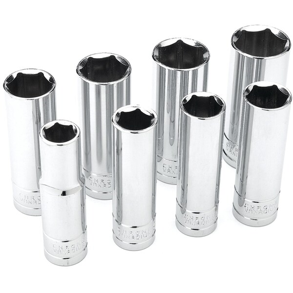 1/2 Inch Drive; Standard; Deep/ 6 Point; Chrome Vanadium Steel; With Size Of 1/2 Inch/ 9/16 Inch/ 5/8 Inch/ 11/16 Inch/ 3/4 Inch/ 13/16 Inch/ 7/8 Inch/ 15/16 Inch; Set Of 8