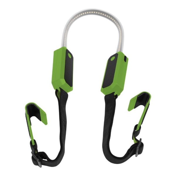 Fits Any Size Hoods; 15 Inch Flexible Light Bar; Hands Free; 1000 Lumens; 60 Wide Angle LED; Battery Powered; Green/ Black; 18650 2200 Milliampere Hour Li-Ion Dual Batteries/ USB Charging Cable
