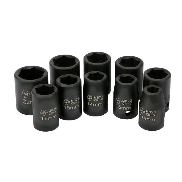 10-Pc 1/2 In Dr. Mm Impact Socket Set, M593Db