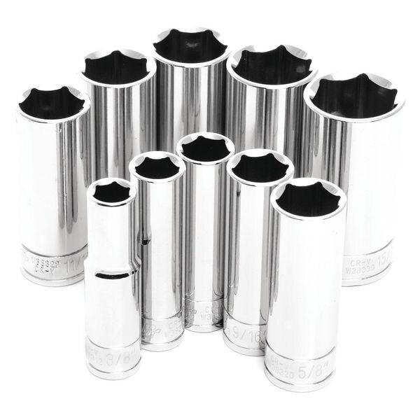 SAE Deep Socket Set,10 Pc,3/8" D