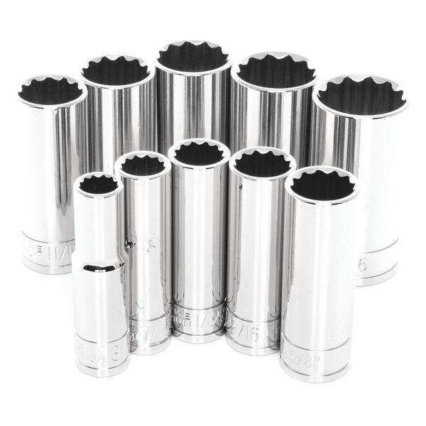 SAE Deep Socket Set,10 Pc,3/8" D,12pt.