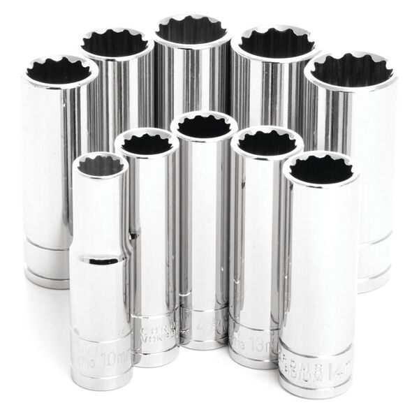 Metric Socket Set,10 Pc,3/8" D,12pt.