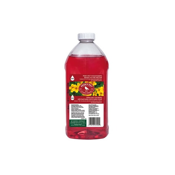 Ingredients: 100 SucrosePerky-Pet ready-to-use Red Hummingbird Nectar is just what you need to keep all of your hungry hummers happy and well fed. It's convenient for you and tasty for your hummingbirds. Plus, the large 64 oz bottle will keep you in good supply through many visits.