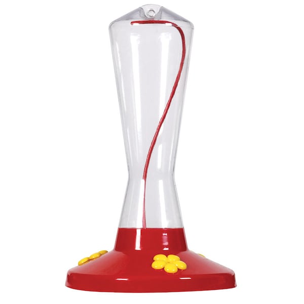 Bring the joy of hummingbird feeding to your backyard with the Perky-Pet clear plastic hummingbird feeder! This classic birdfeeder with its pinch waist design has been a fashionable favorite of hummingbird enthusiasts. It features an 8 oz nectar capacity and three feeding ports to accommodate multiple hummingbirds at once. This bright, cheery feeder boasts red accents that are sure to attract the tiny, delightful birds for hours of birdwatching enjoyment. For your convenience, the clear plastic reservoir makes it easy to monitor nectar levels at a glance so you never run out during peak feeding times. Meanwhile, the shatter-resistant plastic construction ensures durability, so you know this feeder will be a centerpiece in your yard for years to come.