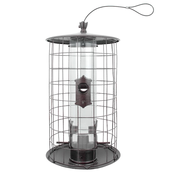 The Perky-Pet the preserve feeder features a decorative metal top, feeding ports, perches and holds up to 3 lb of seed. The patented, diamond-shaped barrier allows birds in and keeps squirrels out.