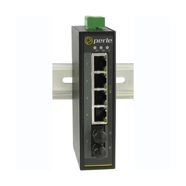 IDS-105F-M2ST2-XT Industrial Switch: 4 x 10/100Base-TX RJ-45 ports and 1 x 100Base-FX, 1310nm multimode port with duplex ST connector [ up to 5km/3.1 miles ].-40 to 75C industrial extended operating temperature.