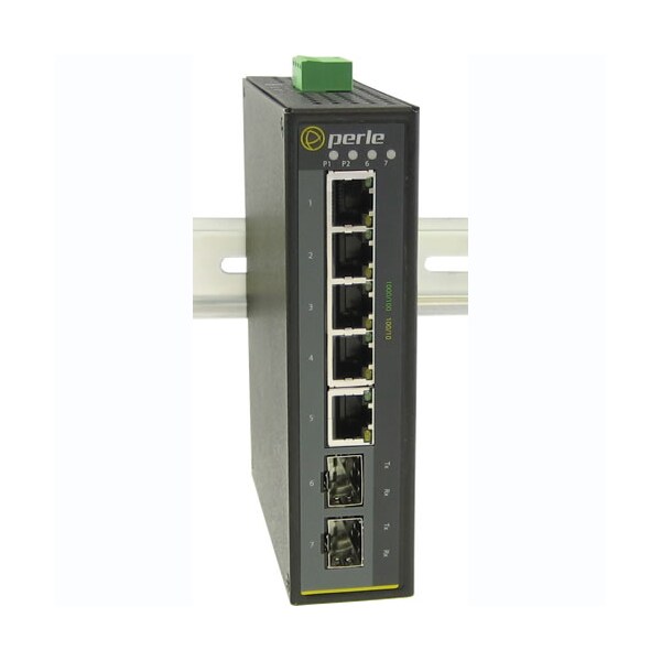 IDS-105G-DSFP Industrial Gigabit Switch: 5 x 10/100/1000Base-T Base-T RJ-45 ports and 2 x 1000BASE-X SFP slots (empty). 0 to 60C operating temperature.