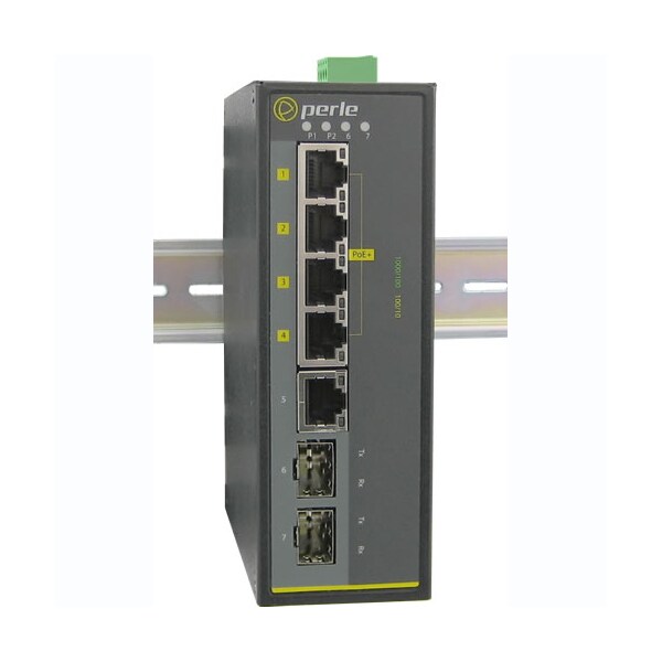 IDS-105GPP-DSFP Industrial PoE Switch: 5 x 10/100/1000Base-T Base-T RJ-45 ports, 4 of which are PoE/PoE+ capable and 2 x 1000BASE-X SFP slot (empty). 0 to 60C operating temperature.