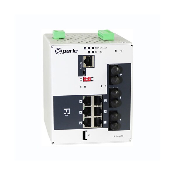 IDS-509G3PP6-T2MD05-SD40 Industrial Managed PoE Switch, 9 ports: 6 x 10/100/1000Base-T Base-T RJ-45 ports, all of which are PoE/PoE+ capable and 2 x 1000Base-SX, 850nm multimode port with duplex ST connector [ 550m/1804 ft ] and 1 x 1000Base-EX, 1310nm single mode port with duplex ST connector [40 km/ 24.9 miles ]. -10 to 60C operating temperature. PRO software feature set.