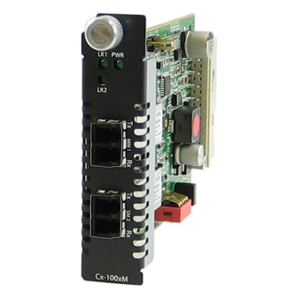 CM-1000MM-S2LC40 - Managed Gigabit Fiber to Fiber Converter Module: 1000BASE-SX 850nm multimode (LC) [550 m/1804 ft.] to 1000BASE-EX 1310 nm single mode (LC) [40 km/24.9 miles]. Managed or unmanaged operation.