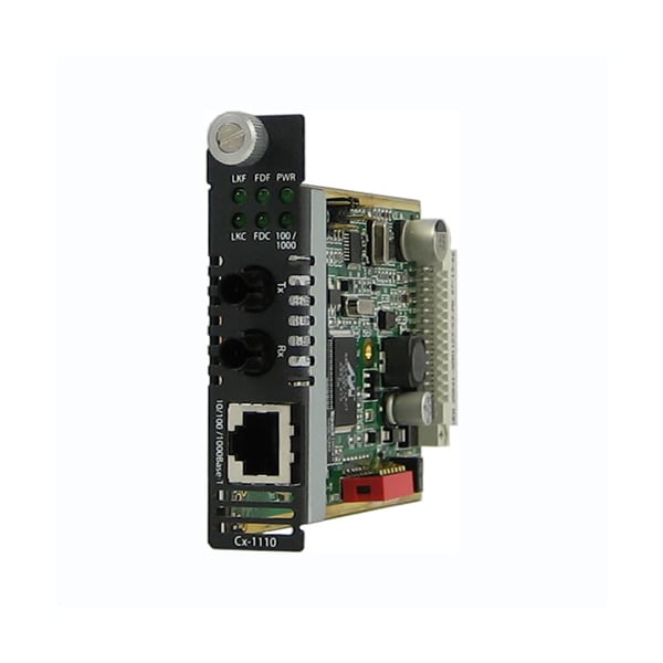 CM-1110-M2ST05 - Managed 10/100/1000Base-T Media and Rate Converter Module: 10/100/1000BASE-T (RJ-45) [100 m/328 ft.] to 1000BASE-SX 850nm multimode (ST) [550 m/1804 ft.]. Managed or unmanaged operation