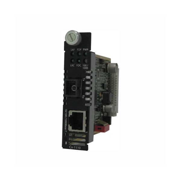 CM-1110-S1SC40D - Managed 10/100/1000Base-T Media and Rate Converter Module: 10/100/1000BASE-T (RJ-45) [100 m/328 ft.] to 1000BASE-BX 1490nm TX / 1310nm RX single strand fiber, single mode (SC) [40 km/25 miles]. Managed or unmanaged operation