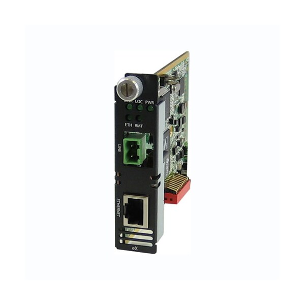 eX-1C110-TB Fast Ethernet Extender Module: 1 port 10/100Base-TX (RJ-45). 2-pin Terminal Block Interlink (VDSL2) connector.