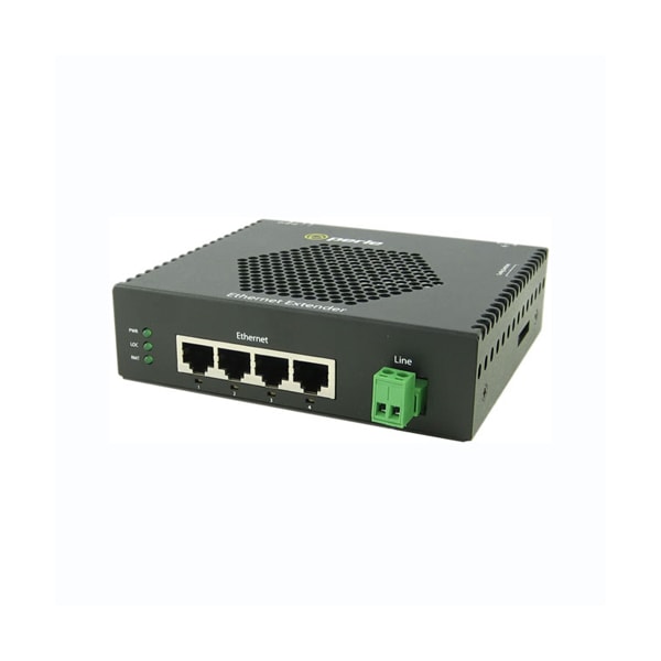 eX-4S1110-TB-XT - Industrial Temperature Gigabit Ethernet Extender: 4 port 10/100/1000Base-T (RJ-45). 2-pin Terminal Block Interlink (VDSL2) connector. -40C to 75C (-40F to 167F) operating temperature