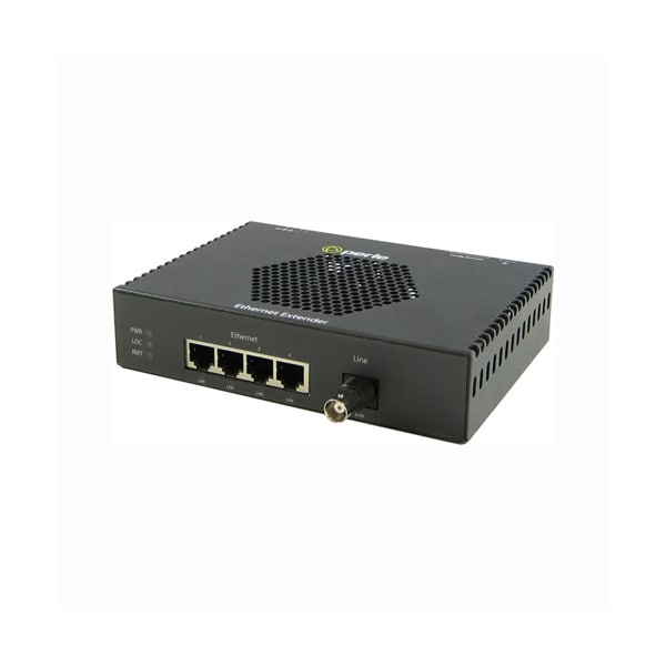 eXP-4S110L-BNC-XT - Industrial Temperature PoE Fast Ethernet Extender: 4 port 10/100Base-TX (RJ-45). BNC Interlink (VDSL2) connector. Provides power over VDSL Link. -40C to 75C (-40F to 167F) operating temperature
