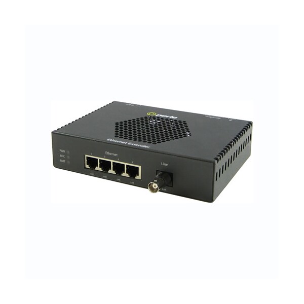eXP-4S1110L-BNC-XT - Industrial Temperature PoE Gigabit Extender: 4 port 10/100/1000Base-T (RJ-45). BNC Interlink (VDSL2) connector. Provides power over VDSL Link. -40C to 75C (-40F to 167F) operating temperature
